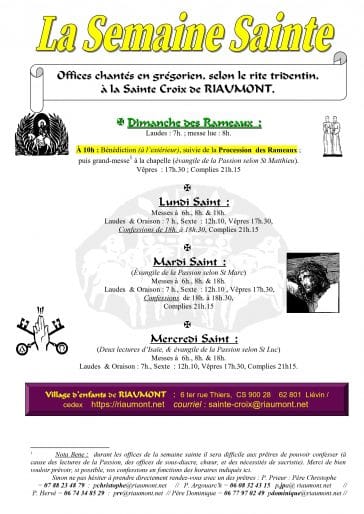 Offices à la chapelle de la Sainte-Croix de Riaumont (rue Thiers, 62800 Liévin).